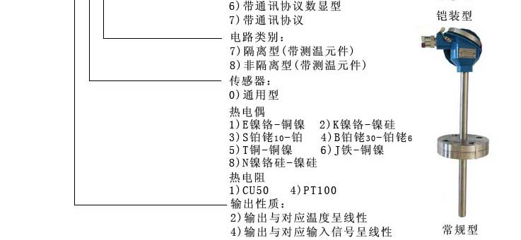·變送器部件是小型化、置于隔爆型、本安型熱電偶的接線盒內(nèi)成為一體化溫度變送器,用于工業(yè)現(xiàn)場。